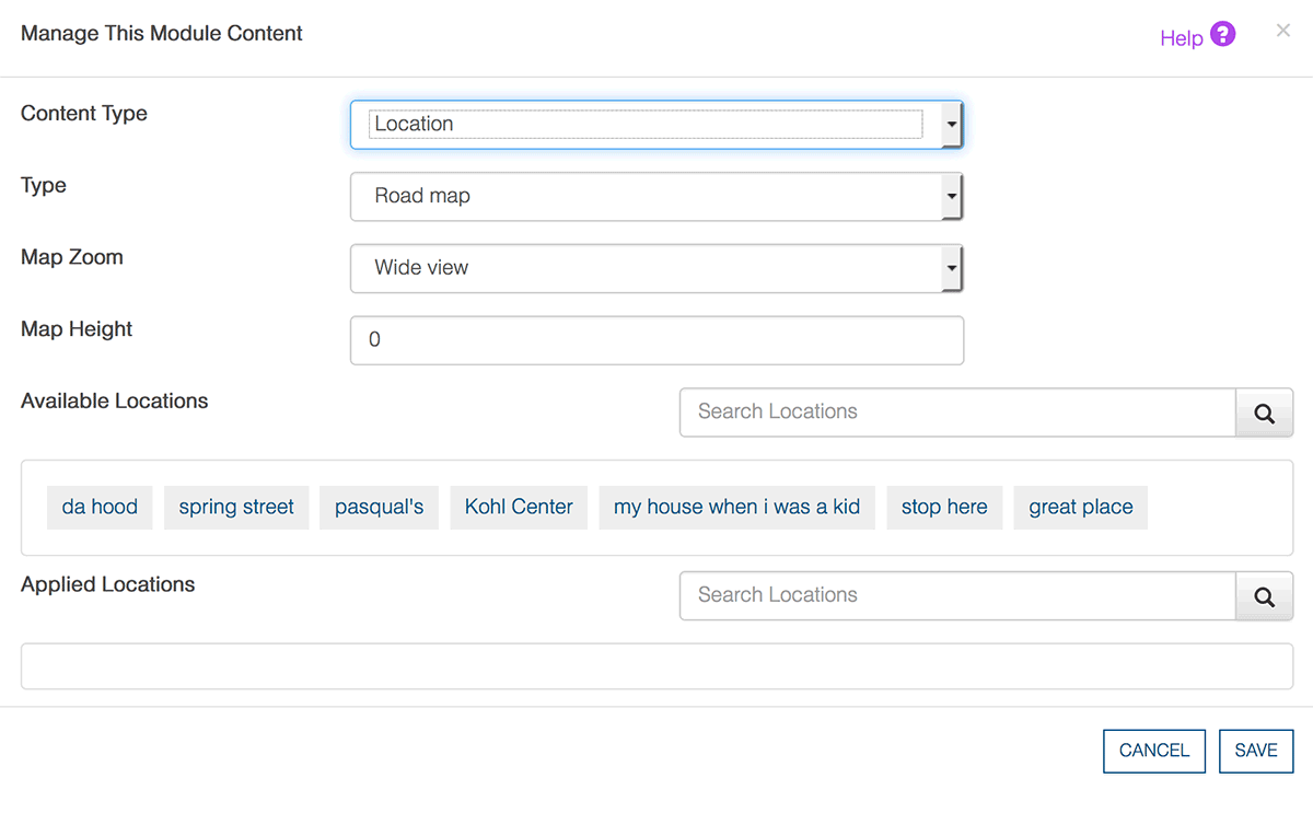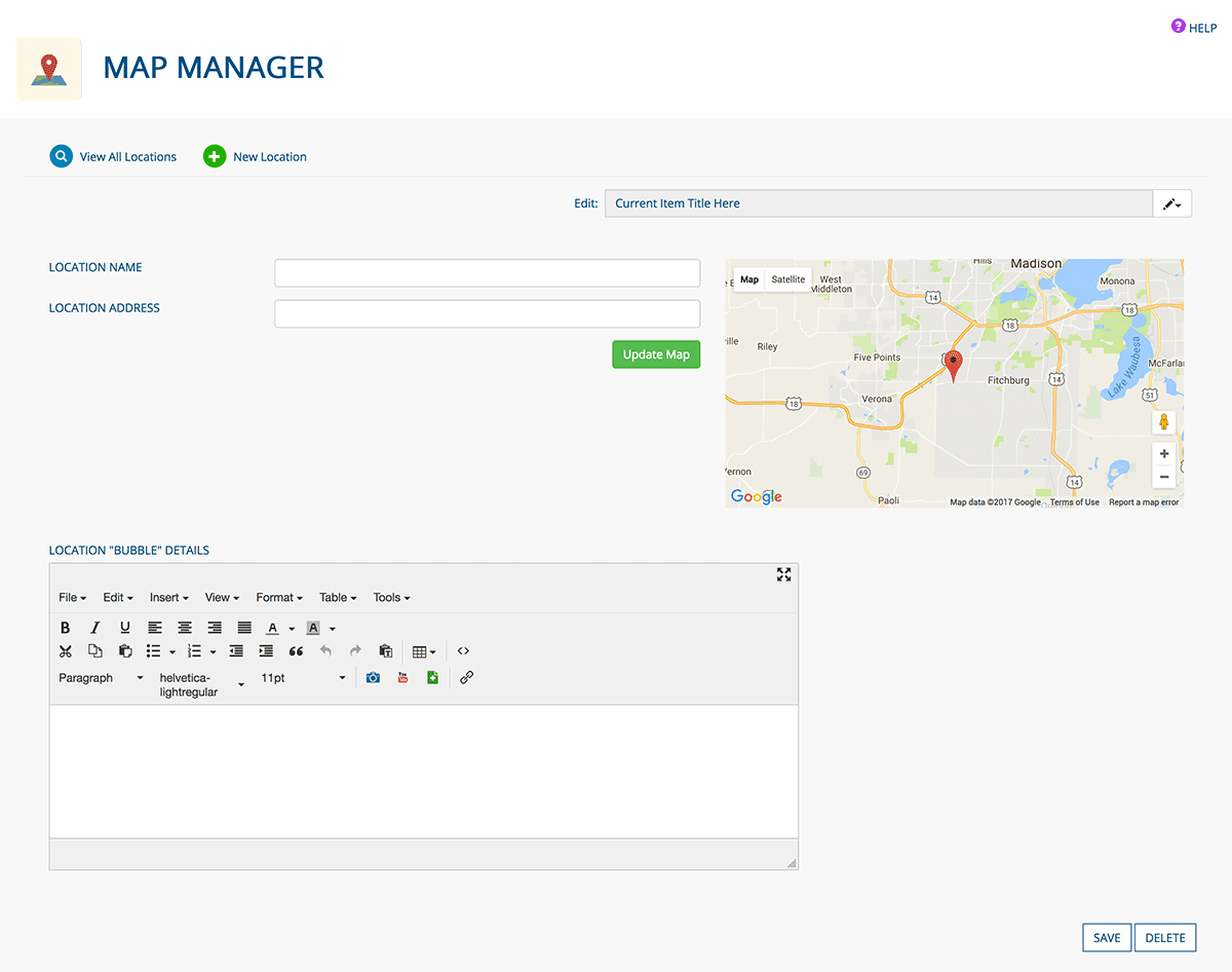 Help your website visitors find a location(s) or get directions to an event using the Hits in a Box Map Manager app. Add custom content to these Google-integrated maps to realize the full potential of this app.